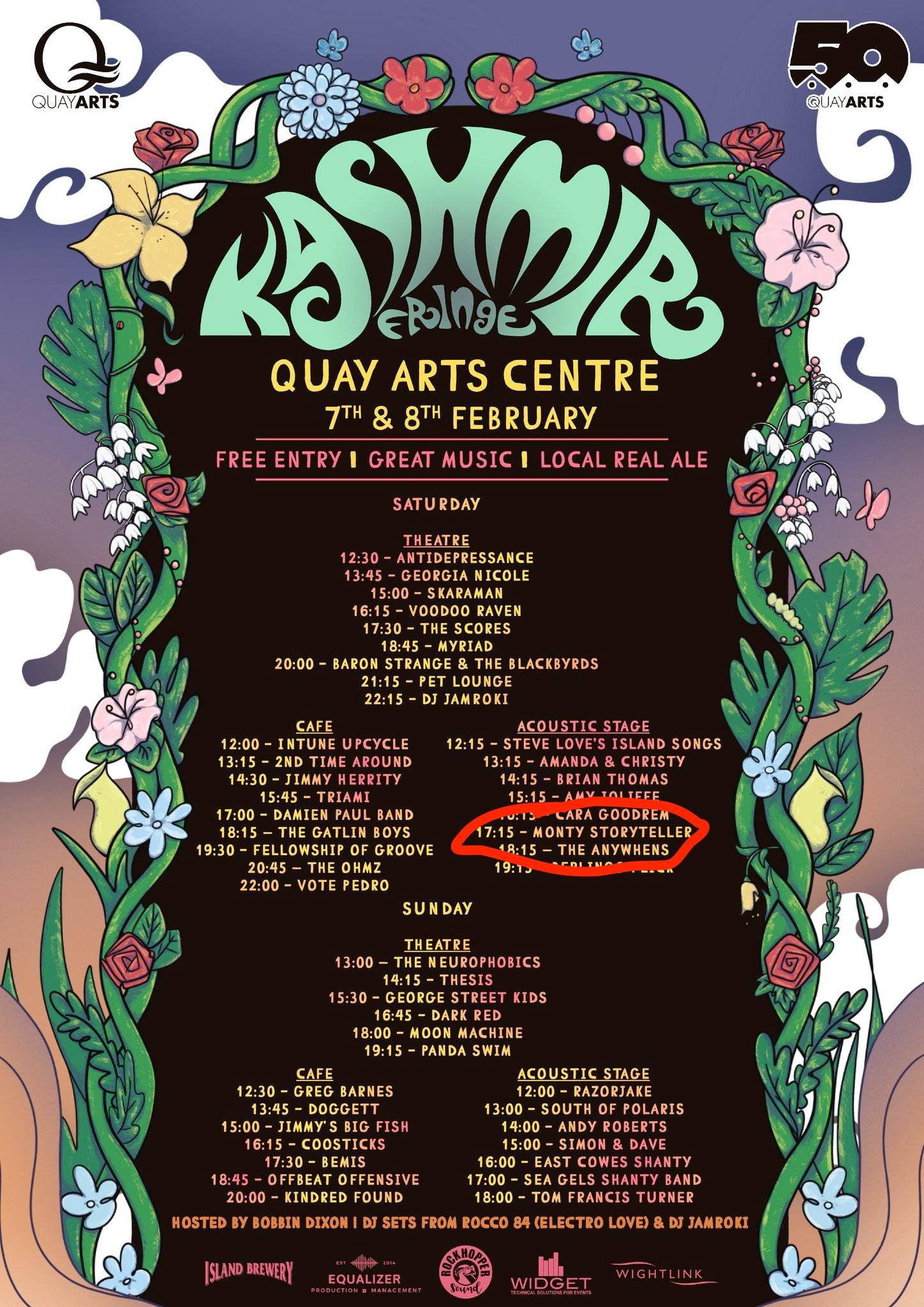 I’m really excited to have been invited to a do a slot on the acoustic stage at the Kashmir Fringe at Quay Arts, Newport, Isle of Wight, on Saturday, February 7th, 2026.